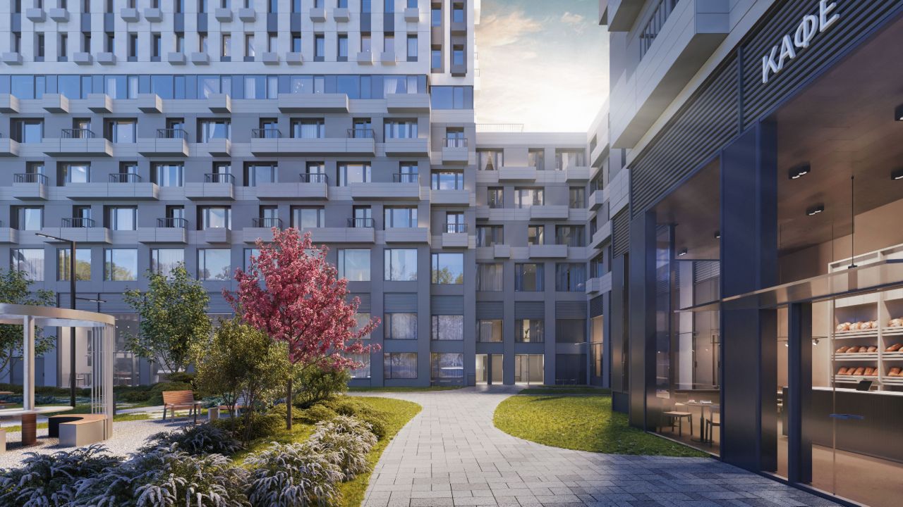 На первых этажах корпусов предусмотрены светлые гостеприимные пространства кафе и пекарен, магазинов и аптек, салонов красоты и служб сервиса. В стилобате второй очереди расположится супермаркет, так что вам не придется тратить время на поездки за продуктами. Самые свежие ингредиенты для идеального ужина будут ждать вас на первом этаже вашего дома.
